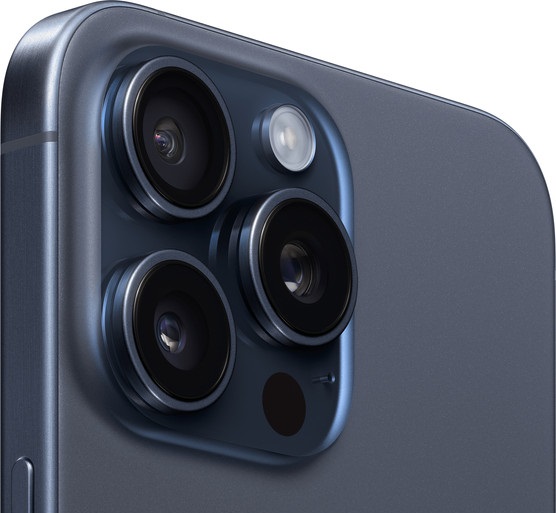 Apple iOS, экран 6.7" OLED (1290x2796) 120 Гц, Apple A17 Pro, ОЗУ 8 ГБ, память 256 ГБ, камера 48 Мп, аккумулятор 4422 мАч, 1 SIM (nano-SIM/eSIM), влагозащита IP68, цвет синий